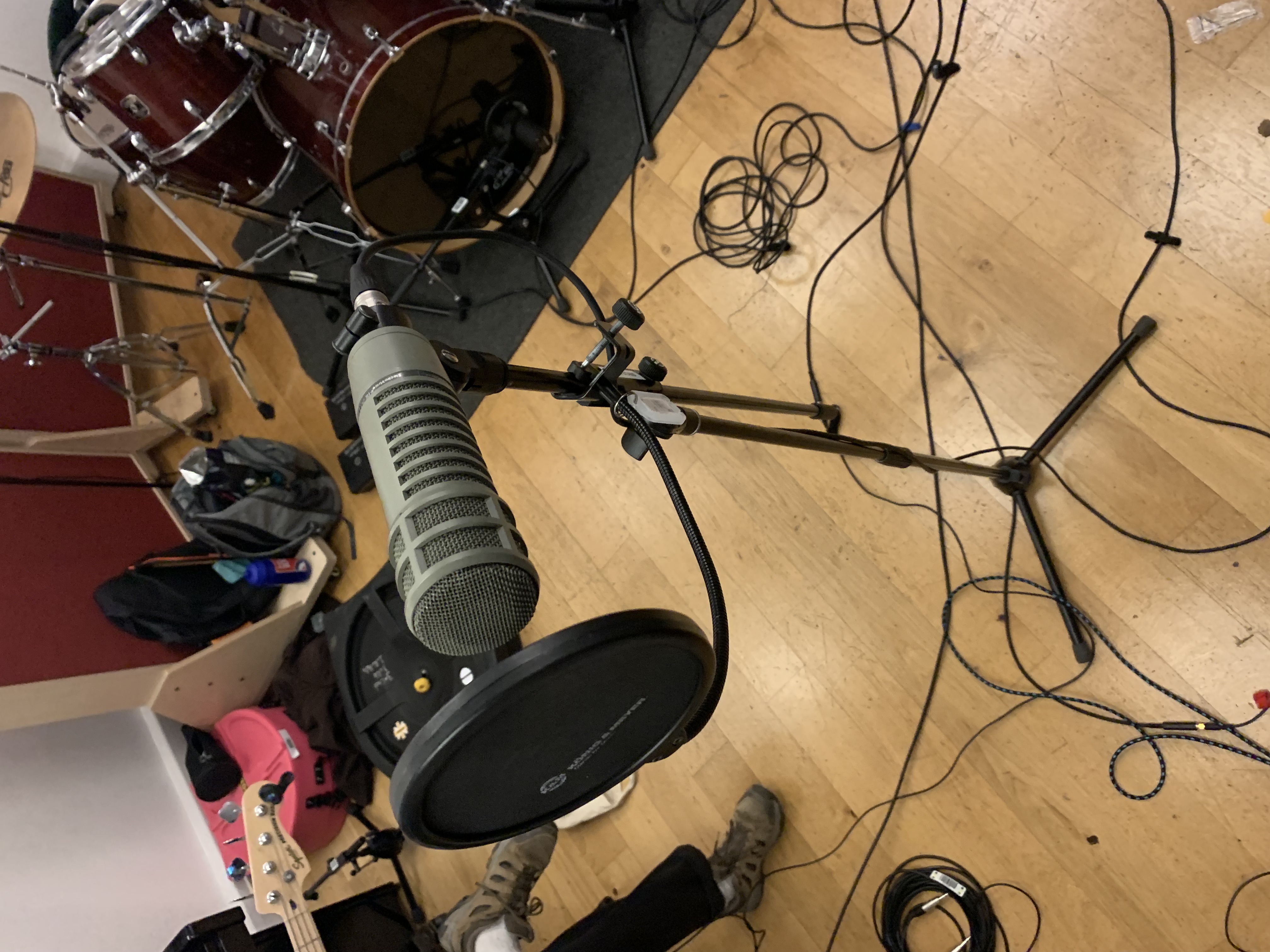 For the vocals we used a RE-20 with a pop filter applied to stop any plosives. While condenser mics are more traditionally used for vocals the RE-20 was designed as a broadcast mic and is great at picking up mid-range vocals which we thought would be perfect for Gabe and Lucas’s vocal range.